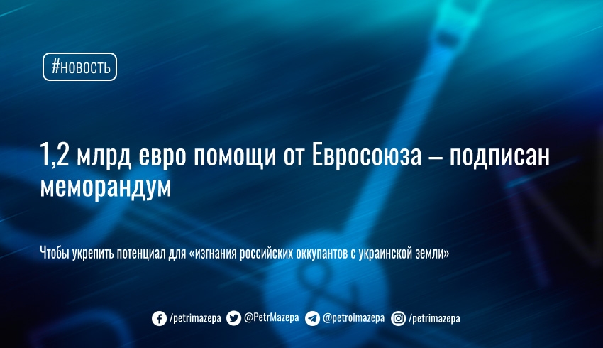 Европейский союз подписал меморандум с Украиной о предоставлении макрофинансовой помощи в объеме 1,2 млрд евро.