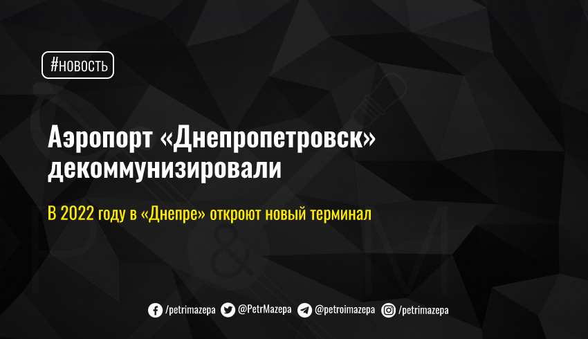 Министр инфраструктуры Украины Владислав Криклий в Facebook написал, что старое название аэропорта «Днепропетровск» осталась окончательно в прошлом.