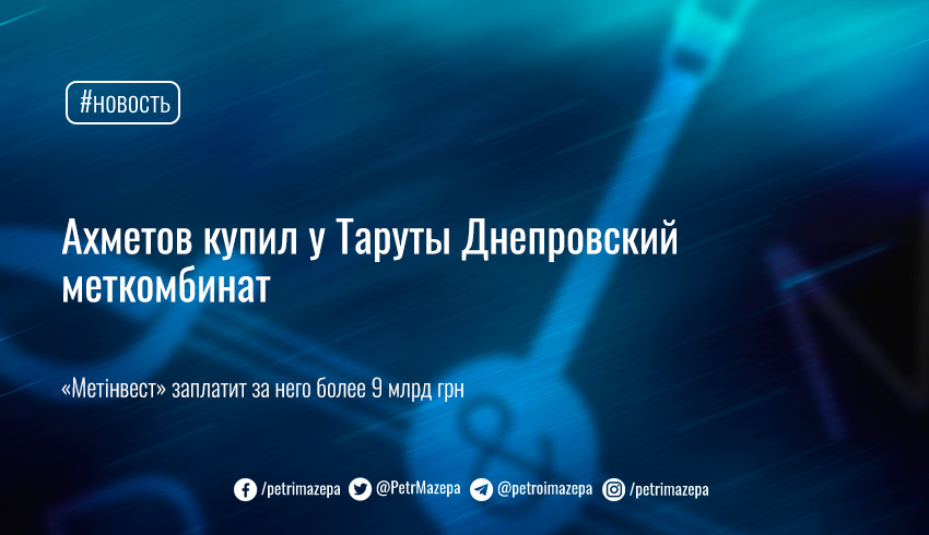 10 мая 2019 г. Тарута анонсировал банкротство Днепровского меткомбината из-за агрессивных действий кредиторов. Последние заявили требования на сумму около 130 млрд грн. В октябре того же года предприятие объявило об остановке основных производственных мощностей и его выставили на продажу.