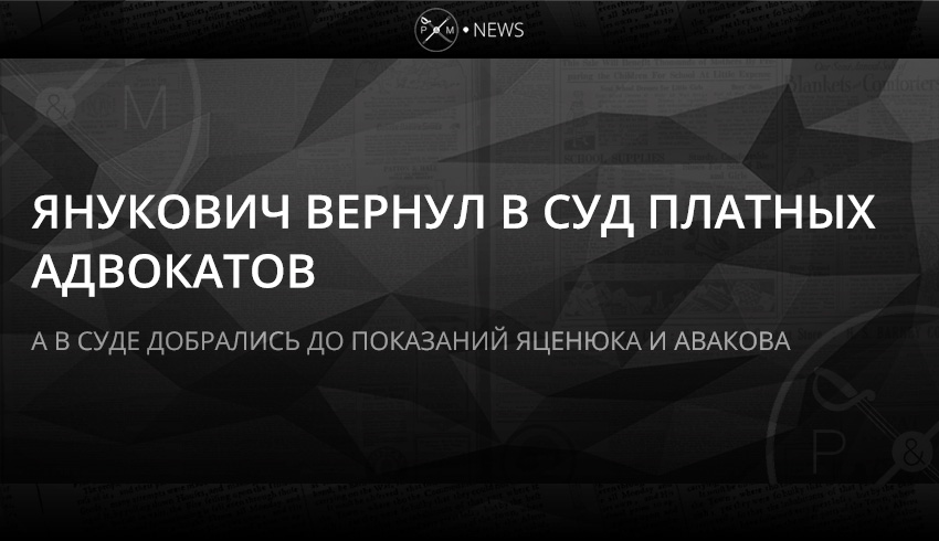 В суд вернулись платные адвокаты подсудимого, в частности Виталий Сердюк. Бесплатный государственный защитник Игорь Ляшенко в связи с этим сразу попросил самоотвод. О возвращении платных защитников попросил сам подсудимый – на имя адвокатского объединения Aver Lex пришло письмо от Януковича, где он просил Виталия Сердюка, Игоря Федоренко и Адриани Фозекош вернуться в процесс. «В заявлении Януковича говорится, что цель нашего появления здесь - допрос свидетелей тщательный, которые фигурируют в другом деле о насильственном захвате власти и госперевороте», - объяснил Сердюк журналистам свое появление на процессе.