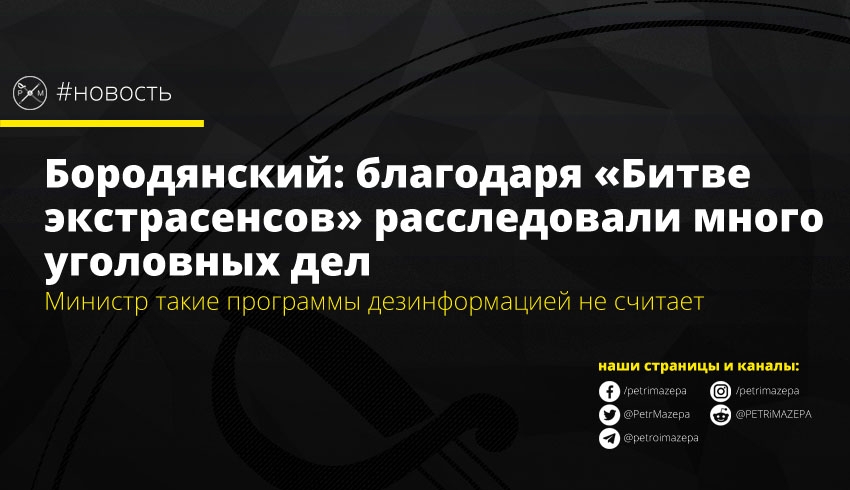 Глава Министерства культуры, молодежи и спорта Владимир Бородянский заявил, что «Битва экстрасенсов» не является дезинформацией, не вводит в заблуждение зрителей, и вовсе благодаря в том числе и этой передаче было расследовано много уголовных дел, невиновные вышли на свободу.