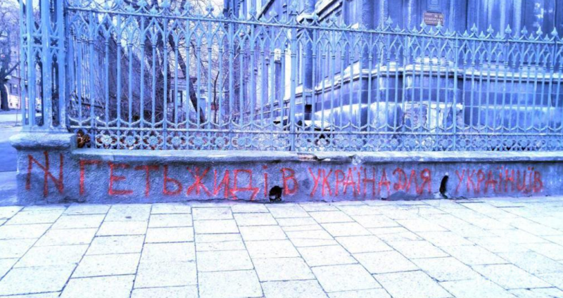 Так, на здании областного архива на Пушкинской , где раньше располагалась Бродская синагога и которое планируют передать еврейской общине «Хабад Шомрей Шабос», вандалы написали «Геть жидів. Україна для українців». Возле музея Холокоста на Малой Арнаутской преступники написали «Перший тост за Холокост». Надпись «Тьотя Соня не спасет, тут господар українець» отмечена возле еврейского культурного центра Beit-Grand на Нежинской.