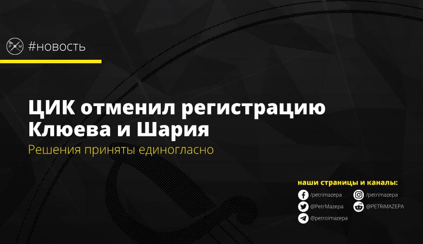 Также ЦИК единогласно отменил регистрацию кандидата Анатолия Шария.