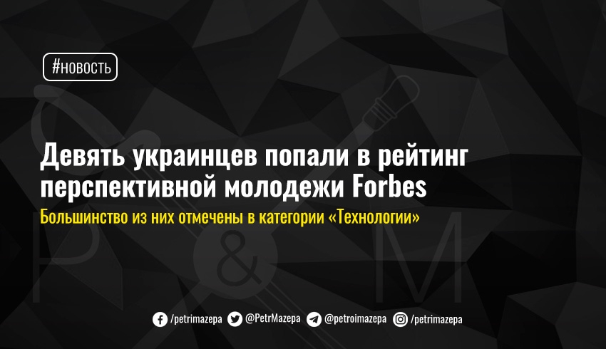 Девять украинцев попали в рейтинг перспективной молодежи Forbes