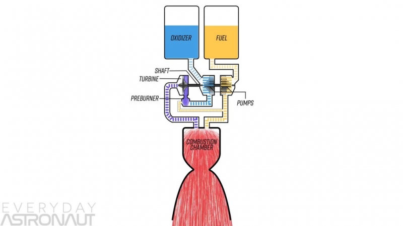 Но как и во всех двигателях, давление в камере сгорания не может превышать давление в насосе, поэтому турбонасосу приходится тащить тяжёлую ношу на своих маленьких металлических плечах.