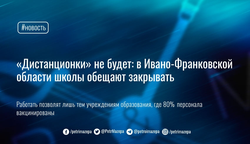 В Ивано-Франковской области не будет дистанционного формата обучения – после введения даже «желтой» зоны карантина школы, где вакцинировано менее 80% персонала, будут закрыты на карантин.