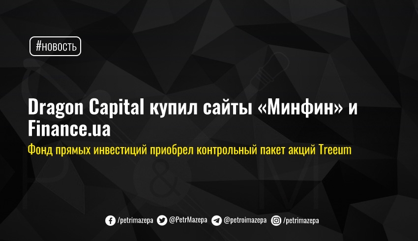 Фонд прямых инвестиций Dragon Capital New Ukraine Fund LP приобрел контрольный пакет акций компании Treeum, которой принадлежат медиаресурсы minfin.com.ua и finance.ua. Их суммарная аудитория оценивается в 8 млн посетителей в месяц. Сумма сделки неизвестна.