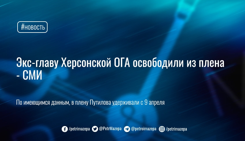 Об этом сообщает «Суспільне», ссылаясь на советника главы Херсонской ОГА (ОВА) Сергея Хланя. По его словам, Путилова освободили 19 июня. Сейчас он дома.