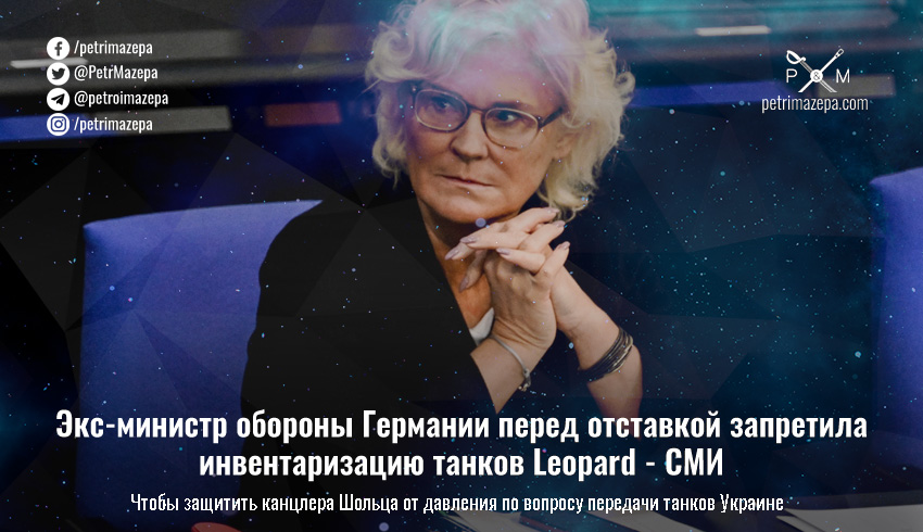 Экс-министр обороны Германии Кристин Ламбрехт, недавно подавшая в отставку, незадолго до ухода с должности запретила проведение инвентаризации запасов танков Leopard для того, чтобы снизить давление на канцлера Олафа Шольца в вопросе передачи танков Украине.