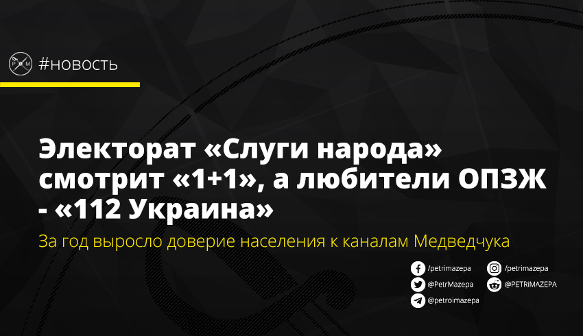 Электорат «Слуги народа» смотрит «1+1», а любители ОПЗЖ - «112 Украина»