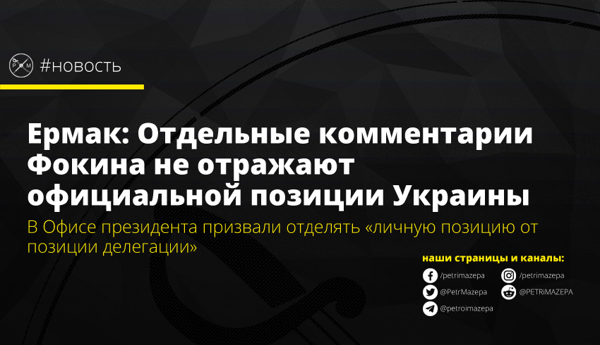 Ермак: Отдельные комментарии Фокина не отражают официальной позиции Украины