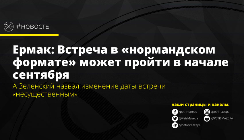 - Вчера стало известно что встреча в «Нормандском формате», запланированная на 28 августа, отменена – росСМИ сообщили что три стороны «четверки», Франция, Германия и Украина, отказались согласовывать документ, вероятно поданный четвертой страной.