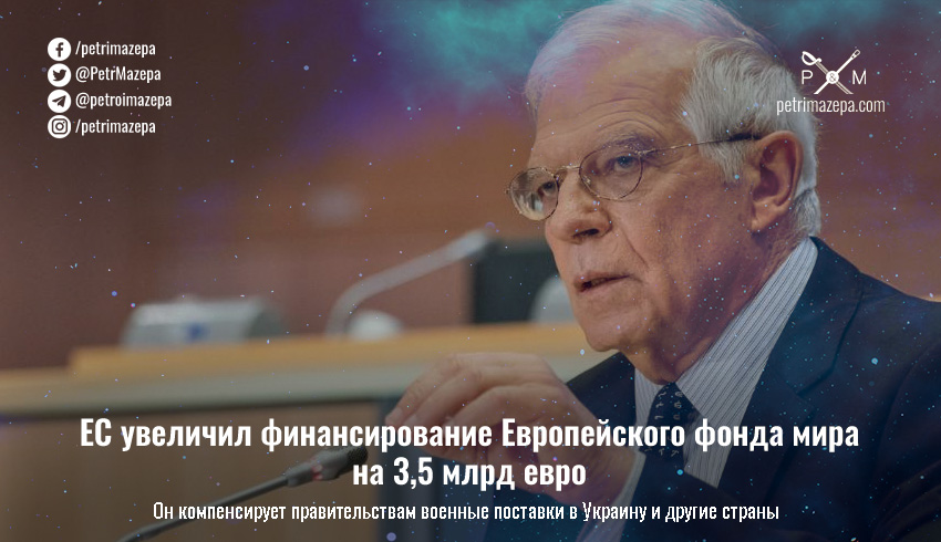 В понедельник, 26 июня, Совет иностранных дел Европейского Союза утвердил увеличение финансирования Европейского фонда мира на 3,5 млрд евро. В основном средства из этого фонда расходуются на компенсацию правительствам стран ЕС военных поставок в Украину.