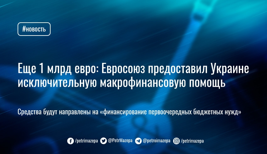 В Украину направили 1 миллиард евро от Европейского Союза. Это часть крупного пакета поддержки Украины в преодолении финансовых последствий войны. Всего будет выделено 9 млрд евро по этому пакету помощи. Она предоставляется ЕС в качестве исключительной макрофинансовой помощи.