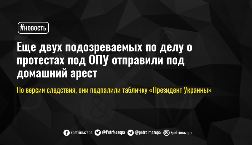 Двух фигурантов дела о протестах под Офисом президента Украины 20 марта отправили под домашний арест. Оба фигуранта, и Артем Лисовец, и Давид Гаджимуратов, подтвердили что принимали участие в акции, однако уверяют, что обвинения в подпале таблички не соответствуют действительности.