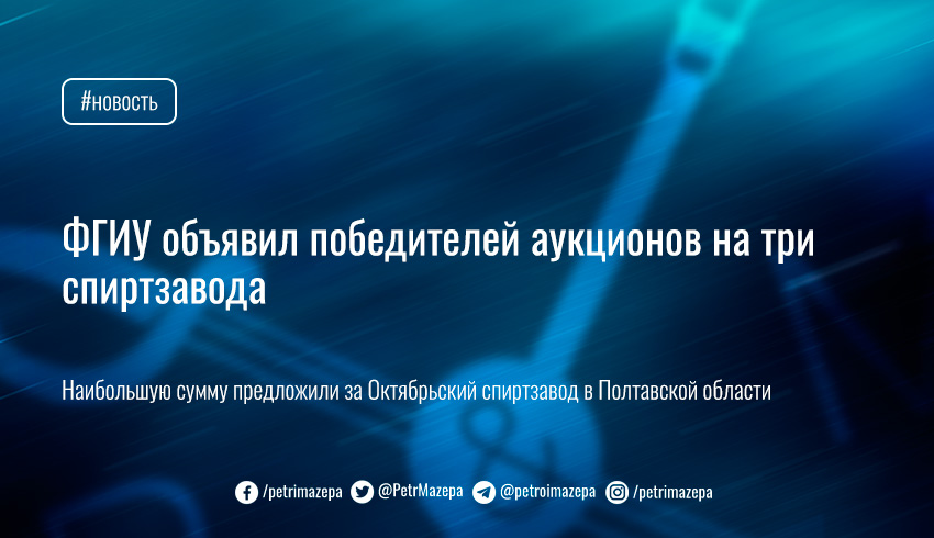 Фонд государственного имущества объявил победителей аукционов на три спиртовых завода.