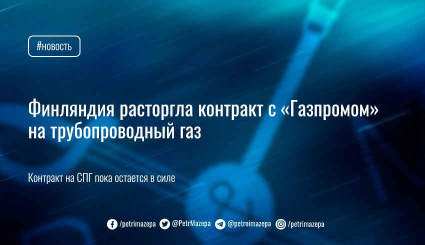 Финляндия расторгла контракт с «Газпромом» на трубопроводный газ