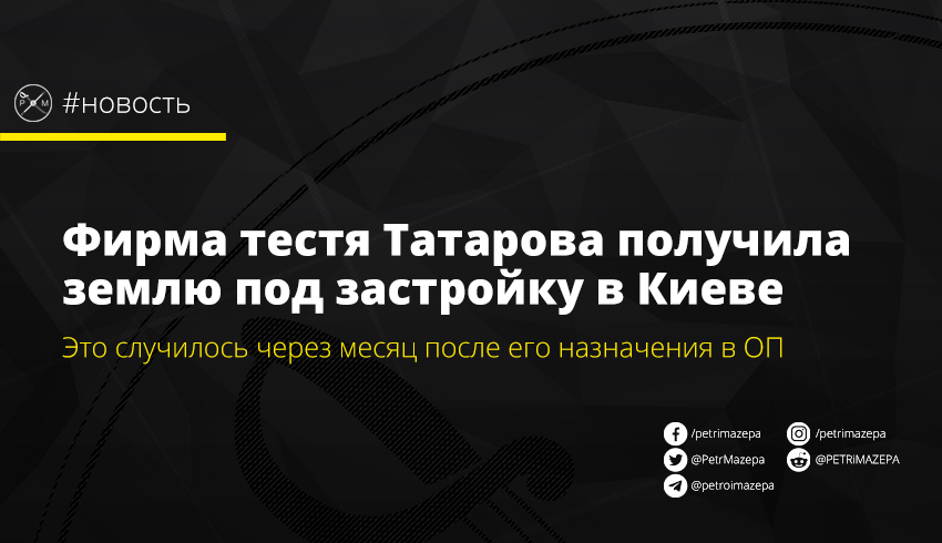 Компания тестя заместителя главы Офиса президента Олега Татарова получила от Киевсовета землю под застройку после назначения Татарова в ОП.
