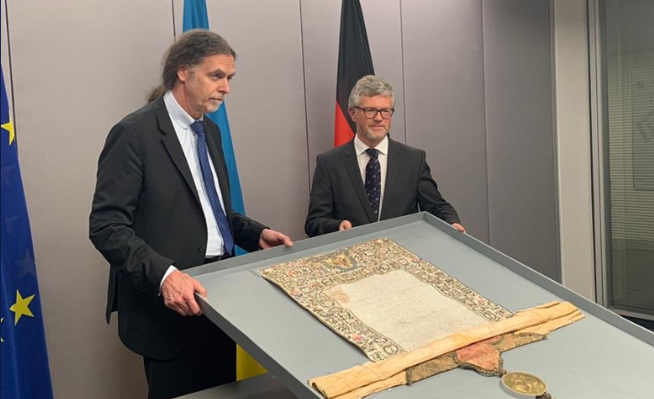 «Действительно исторический день. Германия вернула Украине грамоту Петра I от 1708 года, в которой тот просит Митрополита Киевского Иосифа Кроковского не склоняться на сторону Вселенского патриарха. Как символично: на днях она познакомится с нашим Томосом», - сообщил посол Украины в Германии Андрей Мельник в Twitter.