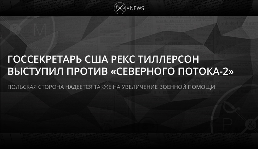 Рекс Тиллерсон сделал акцент на необходимости консолидации всех сил вокруг противодействия строительству «Северного потока-2». «Польша и США вместе выступают против "Северного потока-2", который подрывает общую безопасность и энергетическую стабильность Европы, предоставляя России еще один инструмент для политизации энергетического сектора», - заявил Государственный секретарь США, передает Onet.pl.