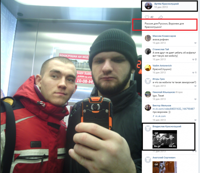 «Россия для Русских, Воронеж для Краснолуцких!», — озаглавлено их совместное фото в соцсети, загруженное в декабре 2013. В соцсети в альбомах братьев много фото на тему Третьего рейха, татуировки и футболки со свастикой, а также селфи со вскинутой правой рукой, похожие на нацистские приветствия.