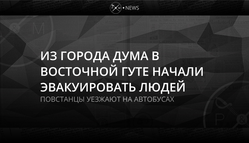Из города Дума в Восточной Гуте начали эвакуировать сирийских повстанцев и их семьи. Об этом начали сообщать правительственные СМИ и российское Минобороны, потом информацию об эвакуации подтвердили и в Сирийском центре мониторинга за соблюдением прав человека, сообщает Deutsche Welle.