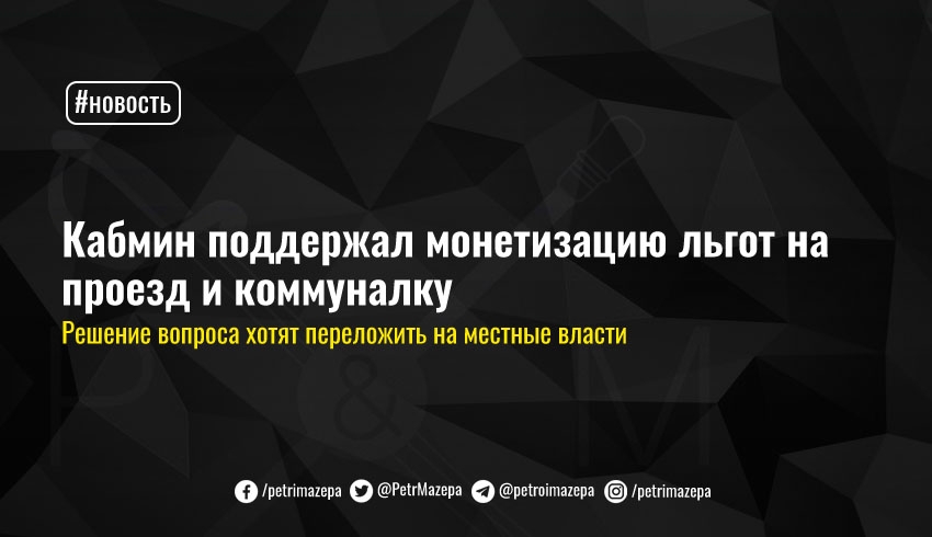Кабинет министров поддержал передачу в Верховную раду законопроекта о монетизации льгот на проезд и коммунальные услуги, а также передачу местным органам самоуправления обязанности решать в каком размере и каком порядке такие компенсации будут выплачиваться.