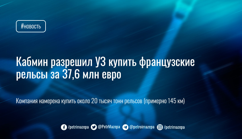 За эти деньги приобретут около 20 тыс. т рельсов (примерно 145 км) у компании Saarstahl Rail. УЗ должна выплатить кредит в течение 35 лет, 14 из которых льготные, по процентной ставке 0,0161% в год.