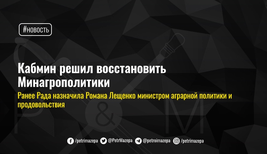 На заседании министр экономики Игорь Петрашко отметил, что ранее Верховная Рада назначила Романа Лещенко министром аграрной политики и продовольствия.