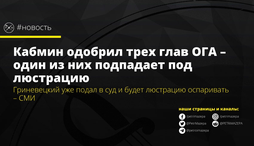 Кабинет министров Украины согласовал кандидатов на должность глав трех ОГА. Один из них, Сергей ГРиневецкий, бывший глава райкома компартии времен СССР, должен подпадать под закон об очищении власти, но он уже подал иск в суд и намерен оспаривать применение к нему люстрационной процедуры.