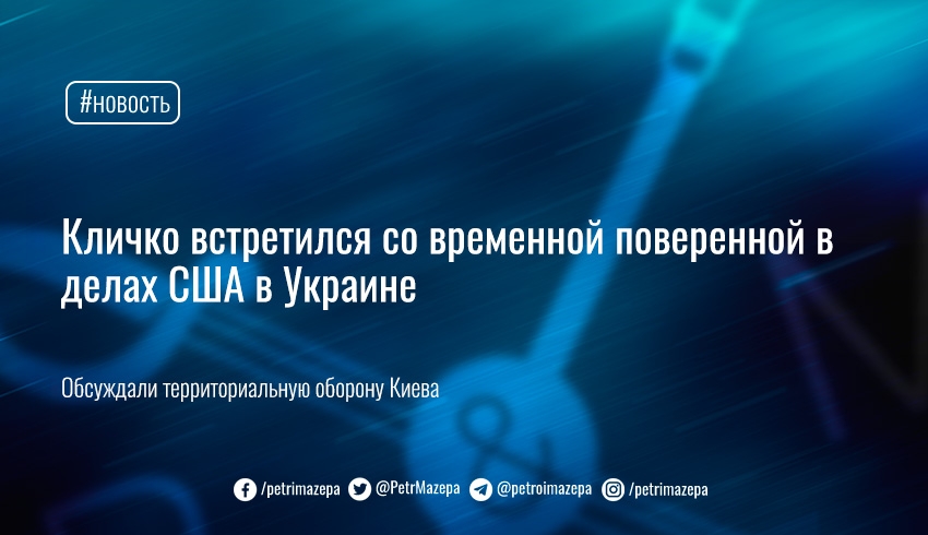 Киевский городской голова Виталий Кличко провел встречу со временной поверенной в делах США в Украине Кристиной Квин по поводу угрозы российской агрессии и территориальной обороны столицы.