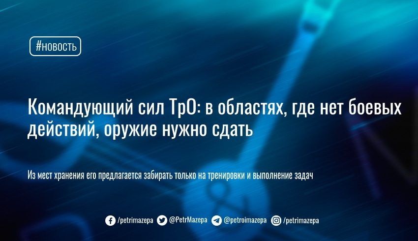 Командующий сил ТрО: в областях, где нет боевых действий, оружие нужно сдать