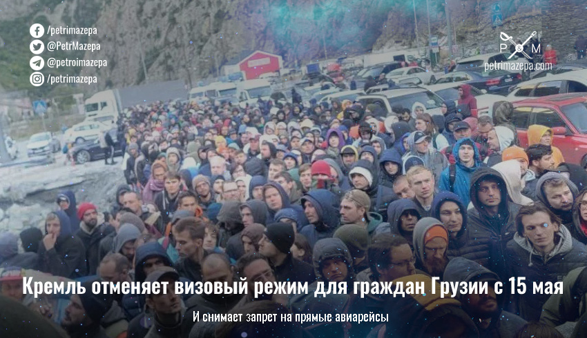 Администрация президента россии обнародовала указ, которым с 15 мая 2023 года отменяется визовый режим для граждан Грузии. Также появилась информация о возобновлении прямого авиасообщения.