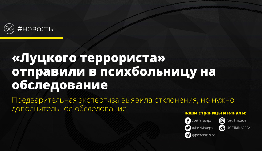 Суд решил поместить «террориста» во Львовскую областную психбольницу в условия, которые исключат его опасность для окружающих. Там ему проведут необходимые дополнительные обследования и обеспечат динамическое наблюдение за пациентов.