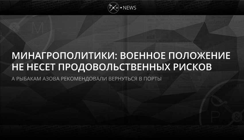 В Министерстве агрополитики и продовольствия проанализировали риски, которые несет эскалация конфликта и военное положение для аграрной отрасли. По результатам анализа сообщено об отсутствии рисков продовольственного характера для внутреннего рынка. А морякам Азовского моря было рекомендовано вернуться в порты.