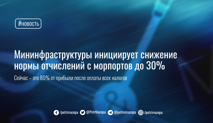 Мининфраструктуры инициирует снижение нормы отчислений с морпортов до 30%