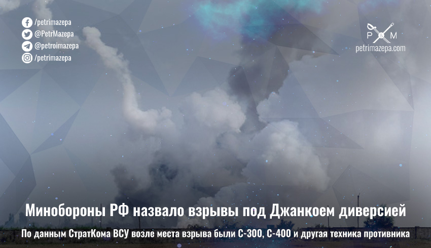 В минобороны страны-агрессора причиной взрывов боеприпасов на временном складе под Джанкоем назвали диверсию. Как уточняют в Центре стратегических коммуникаций (СтратКом) ВСУ, возле места взрывов рашисты сосредоточили около 50 единиц техники, включая С-300 и С-400. Большую часть враг планировал перебросить на оккупированную материковую часть Украины.