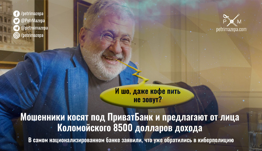 Мошенники косят под ПриватБанк и предлагают от лица Коломойского 8500 долларов дохода