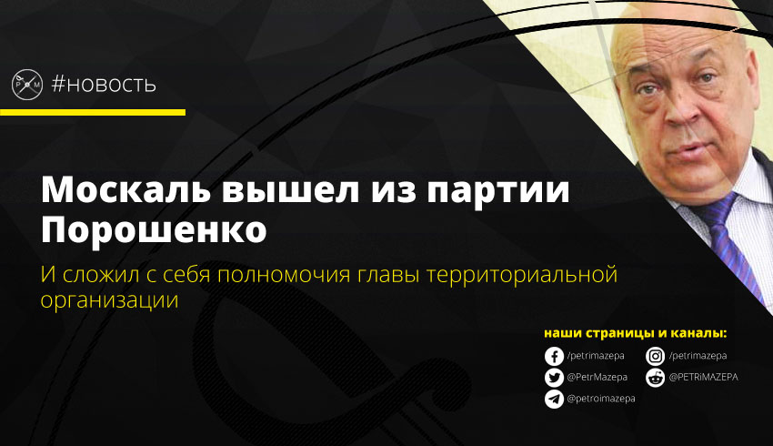 Об этом сообщили на его официальном сайте, выложив также снимок собственноручно написанного заявления. При этом на сайте сообщается, что вышел Москаль с 7 июня, хотя заявление датировано скорее 7 мая, еще до переименования партии Блок Петра Порошенка в «Европейскую солидарность».