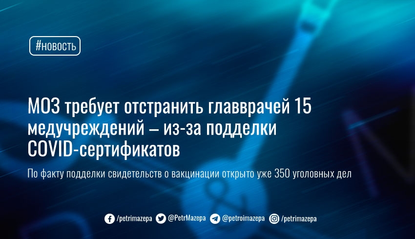 • А 29 сентября стало известно, что в МОЗ намерены отстранять главврачей и лишать лицензии за подделку коронавирусных сертификатов.