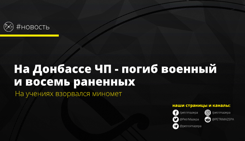 Сегодня на полигоне в Донецкой области во время проведения плановых учебных стрельб произошел взрыв миномета. В результате чего погиб 24-летний старший солдат роты спецназначения отряда специальных операций, еще восемь военнослужащих получили телесные повреждения.