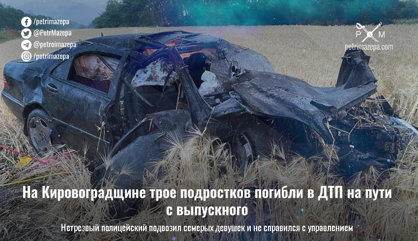 Полицейский отвозил подростков с выпускного и в нарушение правил безопасности посадил в легковой автомобиль семерых выпускников. Вблизи поселка Новгородка на Кировоградщине автомобиль слетел в кювет и перевернулся. Трое девушек погибли, четверо в больнице, правоохранитель задержан.