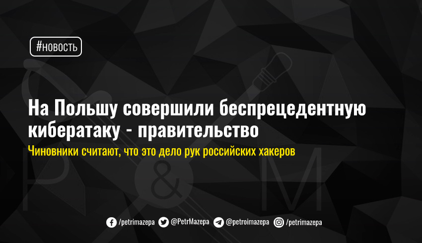 «В последнее время мы стали объектом беспрецедентной кибернетической атаки, направленной на Польшу, на польские учреждения, на отдельных пользователей электронной почты», - отметил официальный представитель правительства Петр Мюллер.