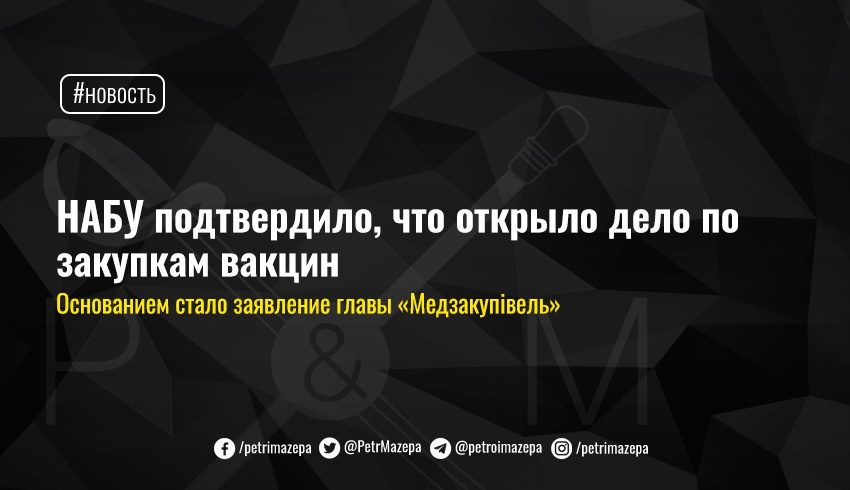 НАБУ подчеркивает, что сам факт начала расследования никак не может составить препятствий для закупок вакцин у поставщиков, тем более уже после истечения срока обещанного начала вакцинации.