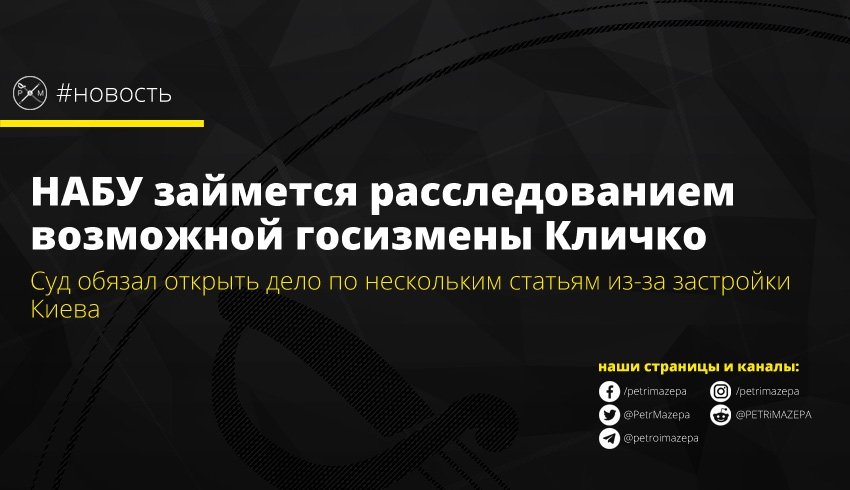 Высший антикоррупционный суд (ВАКС) обязал Национальное антикоррупционное бюро (НАБУ) открыть уголовное производство в отношении городского главы Виталия Кличко и двух его заместителей. Причина – подозрения в государственной измене во время застройки столицы.