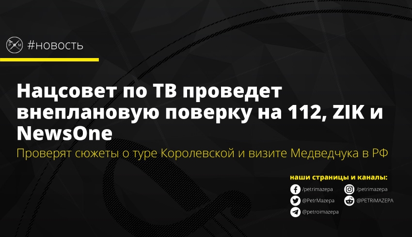 Национальный совет по вопросам телевидения и радиовещания назначил выездные внеплановые проверки телеканалам ZIK, 112 Украина и NewsOne за нарушения, связанные с предвыборной агитацией. Также вопросы есть к материалам о встрече Виктора Медведчука с Владимиром Путиным.