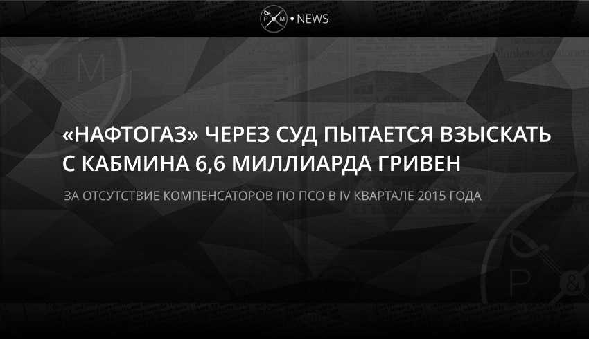 НАК «Нафтогаз Украины» подал в Хозяйственный суд Киева иск к правительству с требованием возместить убытки в размере 6,6 млрд грн. Сумма возникла в четвертом квартале 2015 года из-за отказа Кабмина создать механизм и источники компенсации выполнения компанией специальных обязательств по поставке газа.