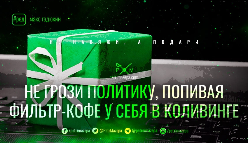 Не грози политику, попивая фильтр-кофе у себя в коливинге. Не навяжи, а подари