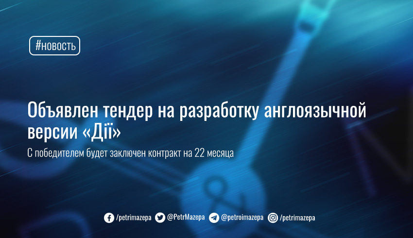 Министерство цифровой трансформации объявило тендер на разработку англоязычной версии единого портала государственных услуг «Дія». С победителем тендера будет заключен контракт на 22 месяца.