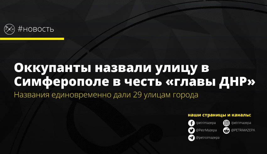 Подконтрольный оккупантам «горсовет Симферополя» решил одним махом назвать 29 улиц города – и в лучших традициях «русского мира», для одной из улиц было выбрано имя убитого террориста ОРДО, «главы ДНР» Александра Захарченко.